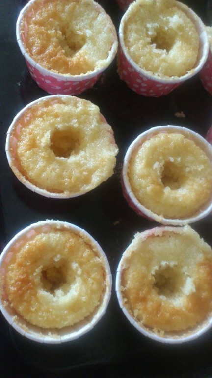 • Soğuyan cupcakelerin ortasını küçük yuvarlak bir kalıpla, yoksa dikiş yüzüğü veya oyacakla çok dibe varmadan dikkatlice çıkarın, bozmadan bir kaba koyun.