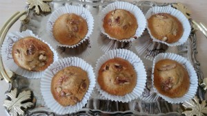 • Kıvamı gelince hamuru, küçük kek kalıplarına yarısına kadar koyarak üzerine ceviz serpin.