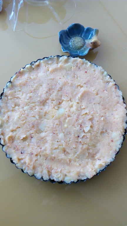 - Tart kalıbına streç film serilerek patatesli karışım bastırarak yerleştirilir.